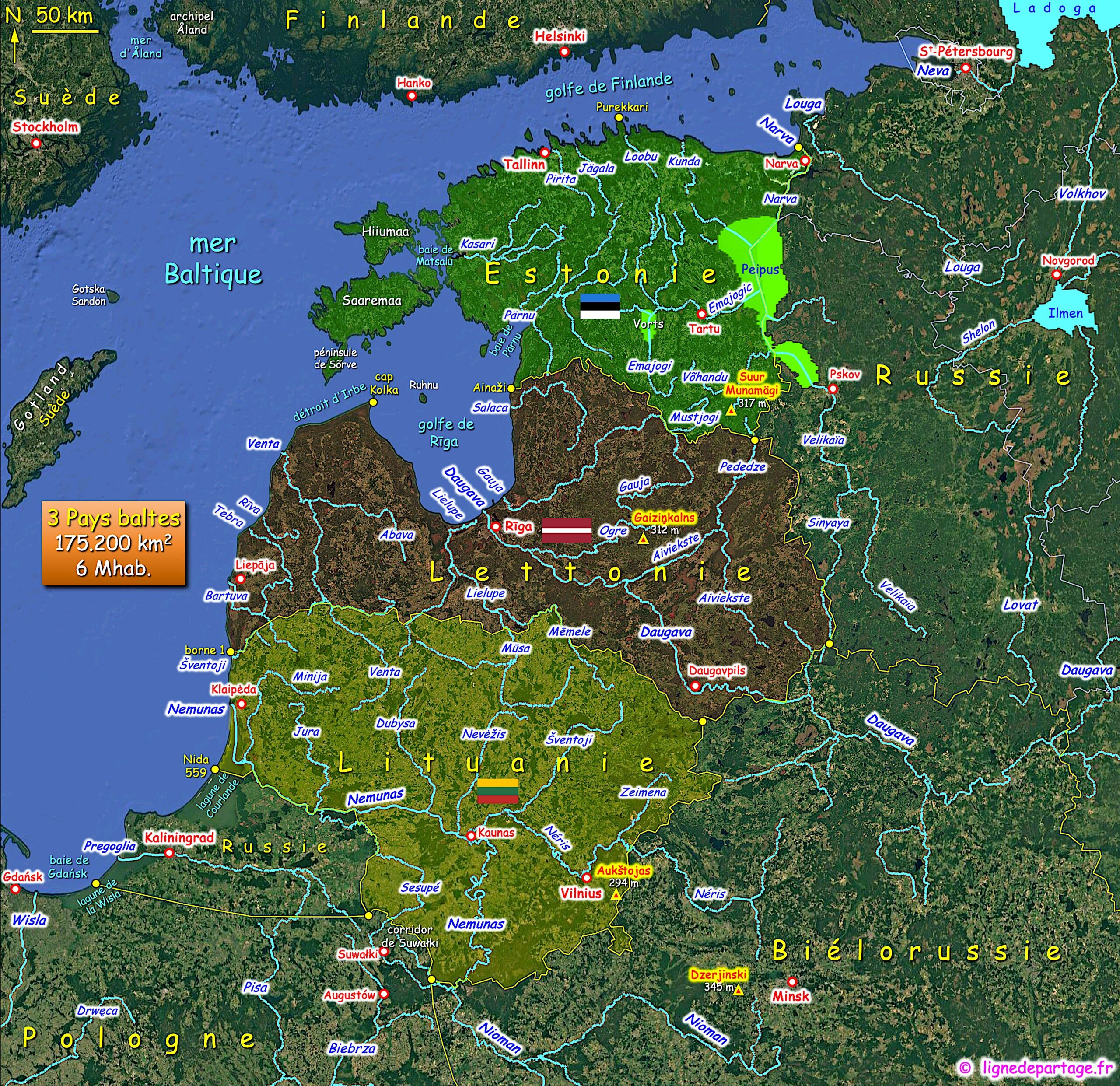 • Ces trois Etats souverains – Estonie, Lettonie et Lituanie par ordre alphabétique du nord au sud – sont souvent appelés les Pays baltes. En bordure de la mer Baltique au nord-est de l’Europe, les Pays baltes rappellent un autre groupe de 3 pays d’Europe, le Benelux (Belgique • Nederland • Luxembourg) en bordure de la mer du Nord.